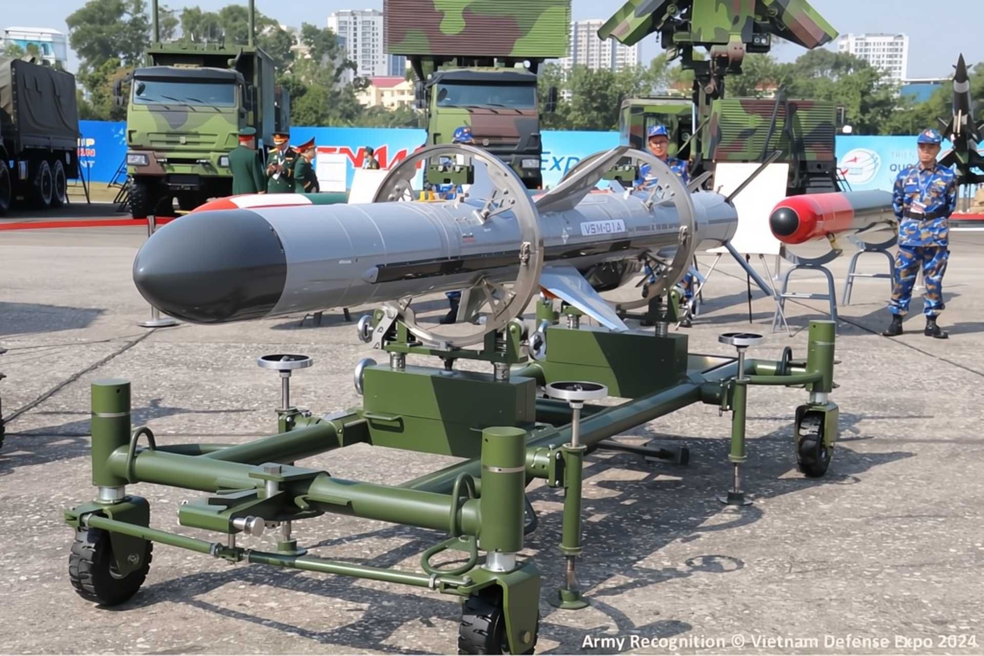 The VSM-01A anti-ship missile, also known as Song Hong, belongs to the VCM-01 missile family, modeled on the Russian Kh-35E missile, with modifications that include a lighter airframe, redesigned air intake, and updated avionics. (Picture source: Army Recognition)