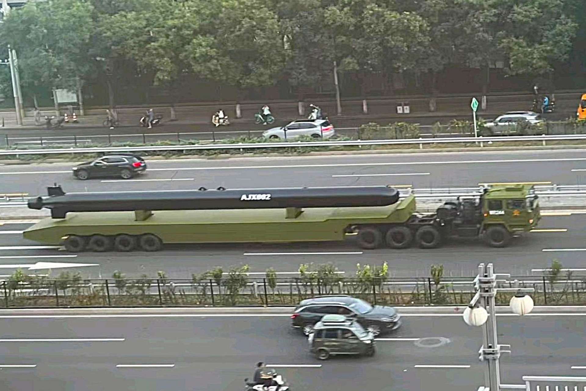 The defense product in question appears to be an extra-large unmanned underwater vehicle (XLUUV), designated AJX-002, though some reports suggest larger variants were also seen. Measuring roughly 18 to 20 meters in length and up to 1.5 meters in diameter, the drone features a torpedo-like design with pump jet propulsion and lifting lugs for crane deployment, suggesting modular construction for transport. Parade rehearsals revealed at least six such UUVs, four of the AJX-002 type and two larger models with double the diameter, hinting at a program of significant scale. Analysts noted that while pumpjets are generally suited for high-speed transit, they tend to be less efficient at lower speeds, raising questions about the system’s power source. The absence of a ventilation mast suggests that an integrated diesel subsystem alone would not suffice, reinforcing the hypothesis that the platform relies on nuclear propulsion. Its size and silhouette immediately drew comparisons to Russia’s Poseidon, with observers speculating on its ability to carry nuclear or conventional payloads.