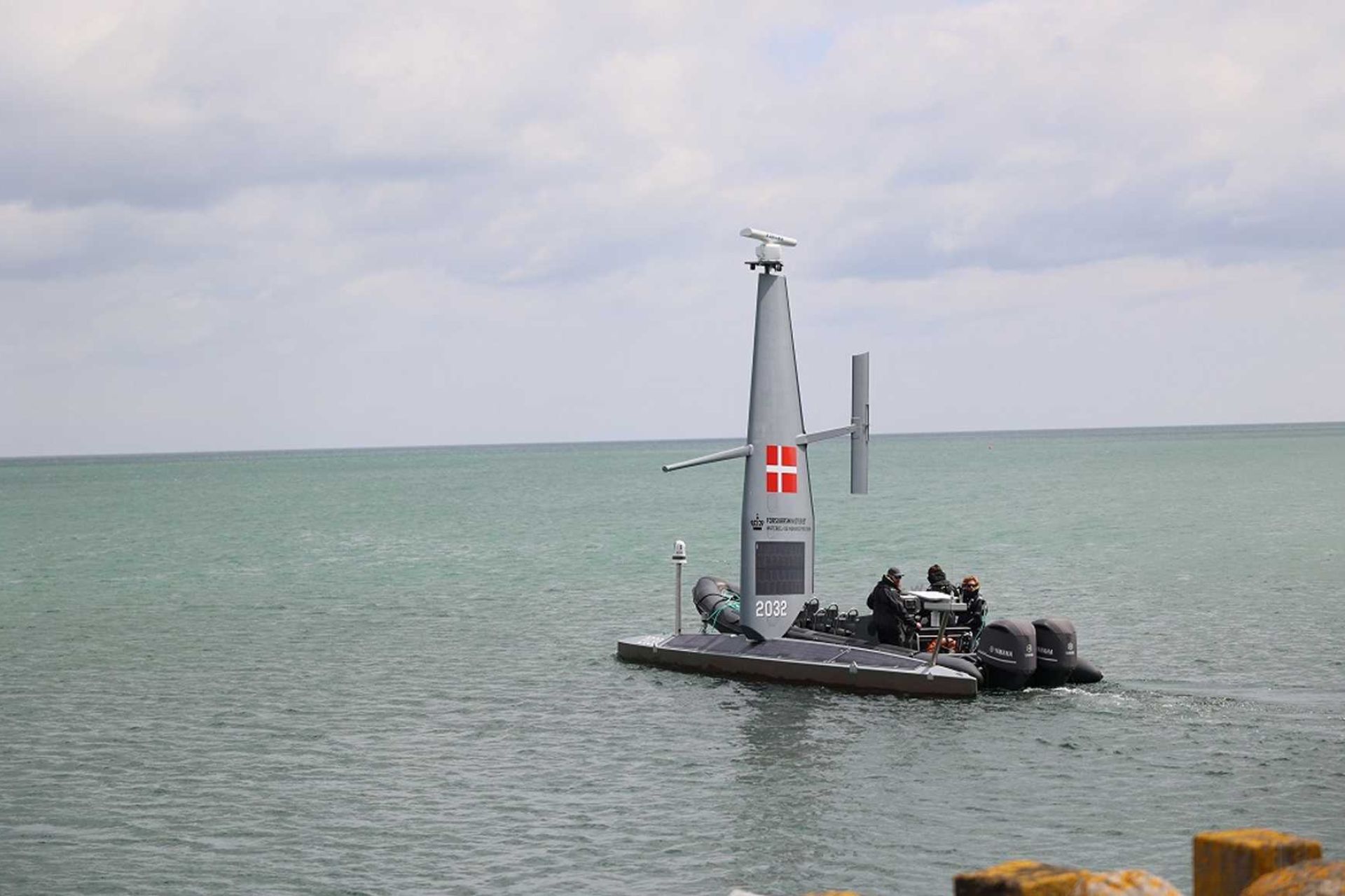 The Saildrone Voyager is a 10-meter-long USV designed to conduct near-shore maritime security and intelligence, surveillance, and reconnaissance (ISR) missions. (Picture source: Danish MoD)