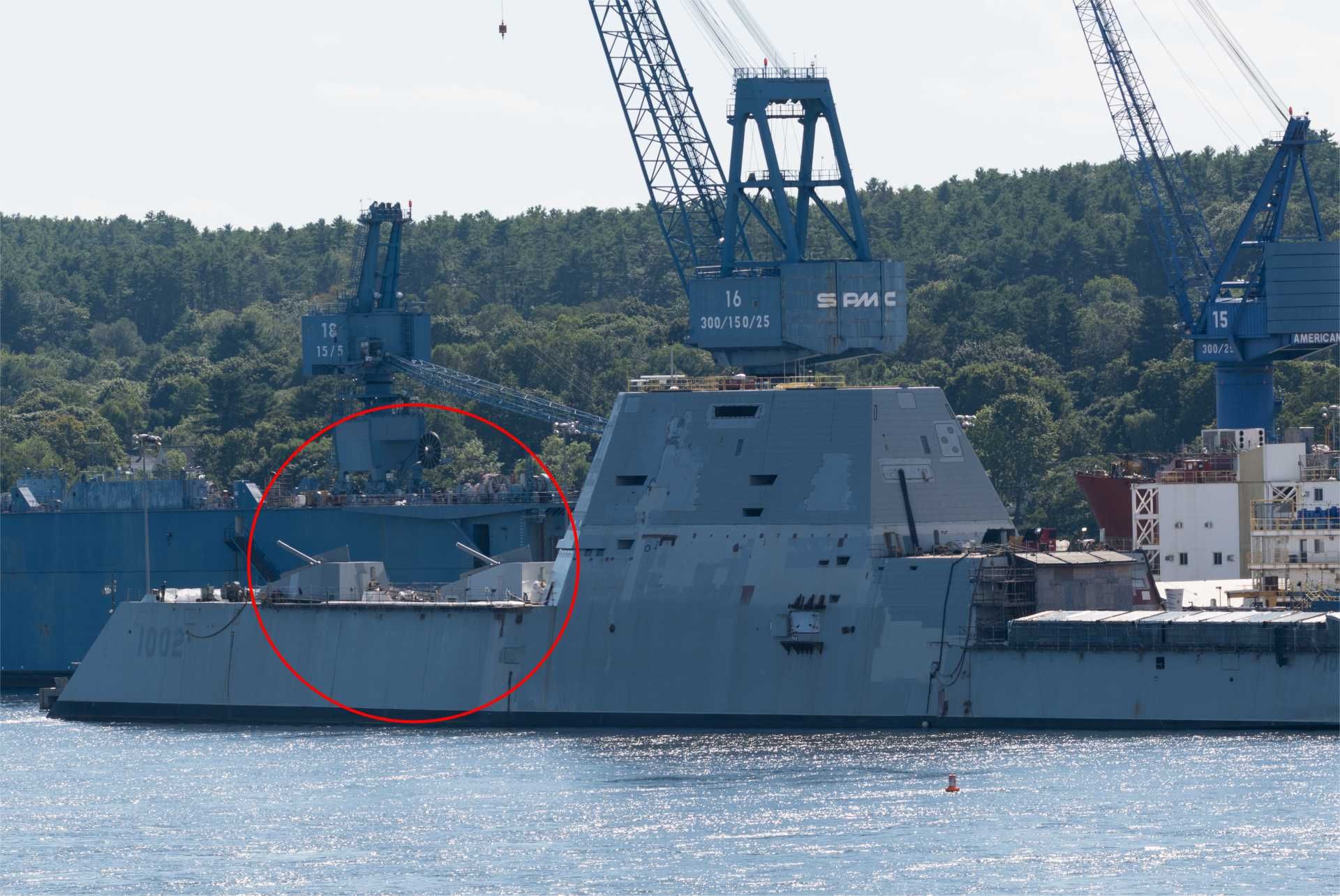 The USS Lyndon B. Johnson Zumwalt-class destroyer undergoes significant modernization, with the two 155mm Advanced Gun Systems replaced by hypersonic missile launchers, enhancing its offensive capabilities for long-range precision strikes. (Picture source: Wikimedia)