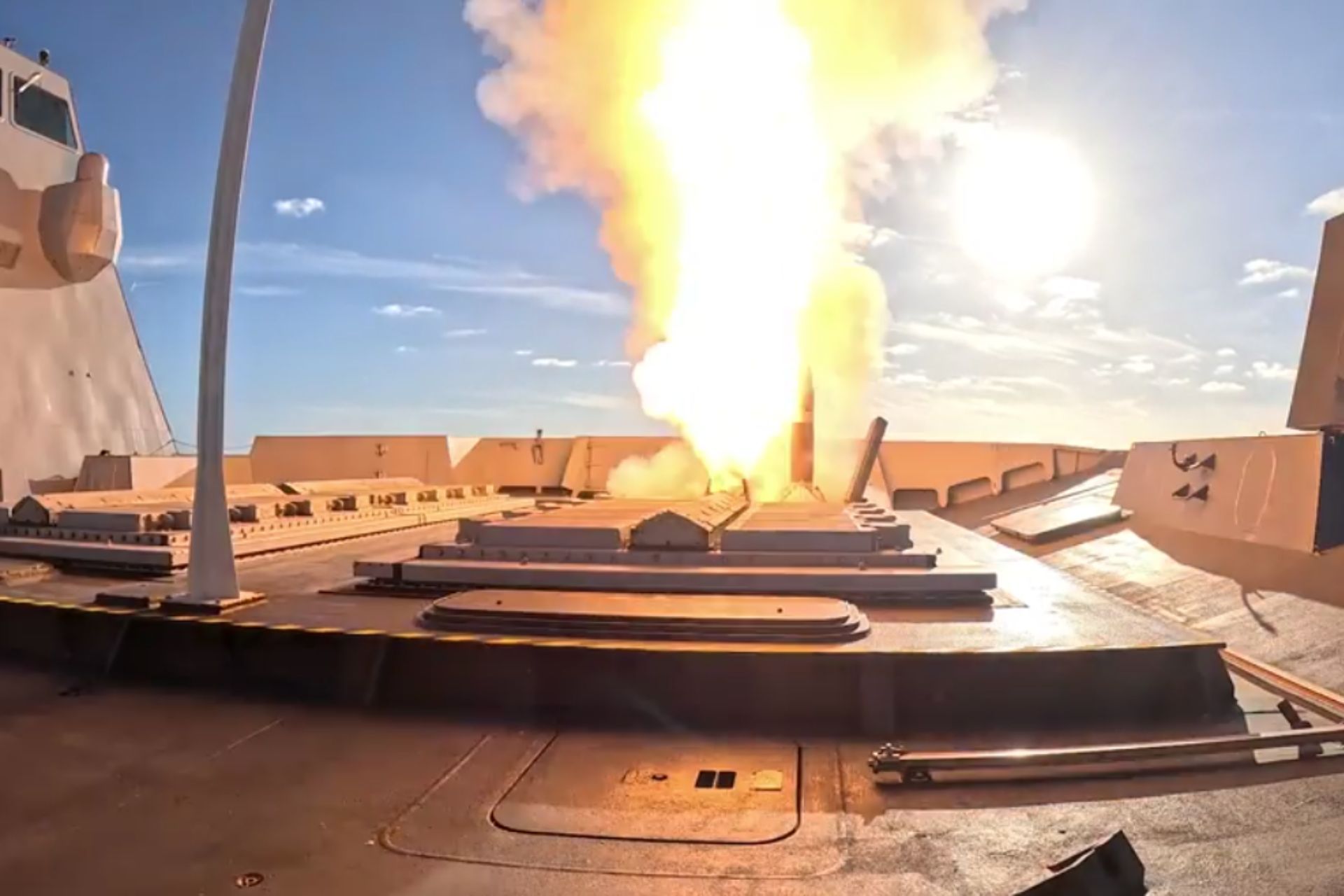 FREMM air-defense frigate Alsace (D656) launches an Aster 30 during a high-intensity drill off the French coast, October 7, 2025. (Picture source: French MoD)