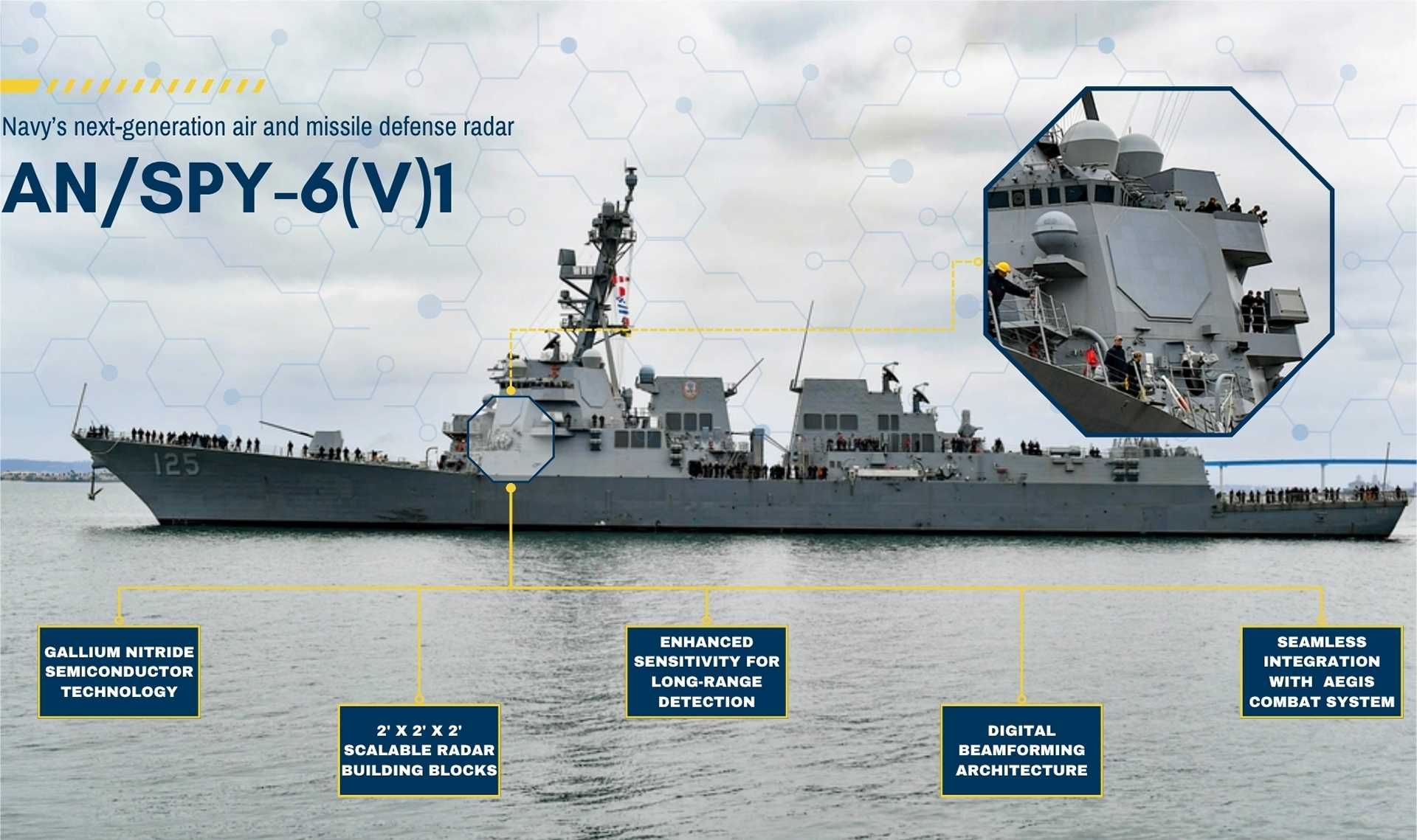 The U.S. Raytheon AN/SPY-6(V)1 Radar, a multi-function, active, phased-array radar system, is designed to enhance the Navy’s capabilities for 21st-century challenges. (Picture source: U.S. Department of War)