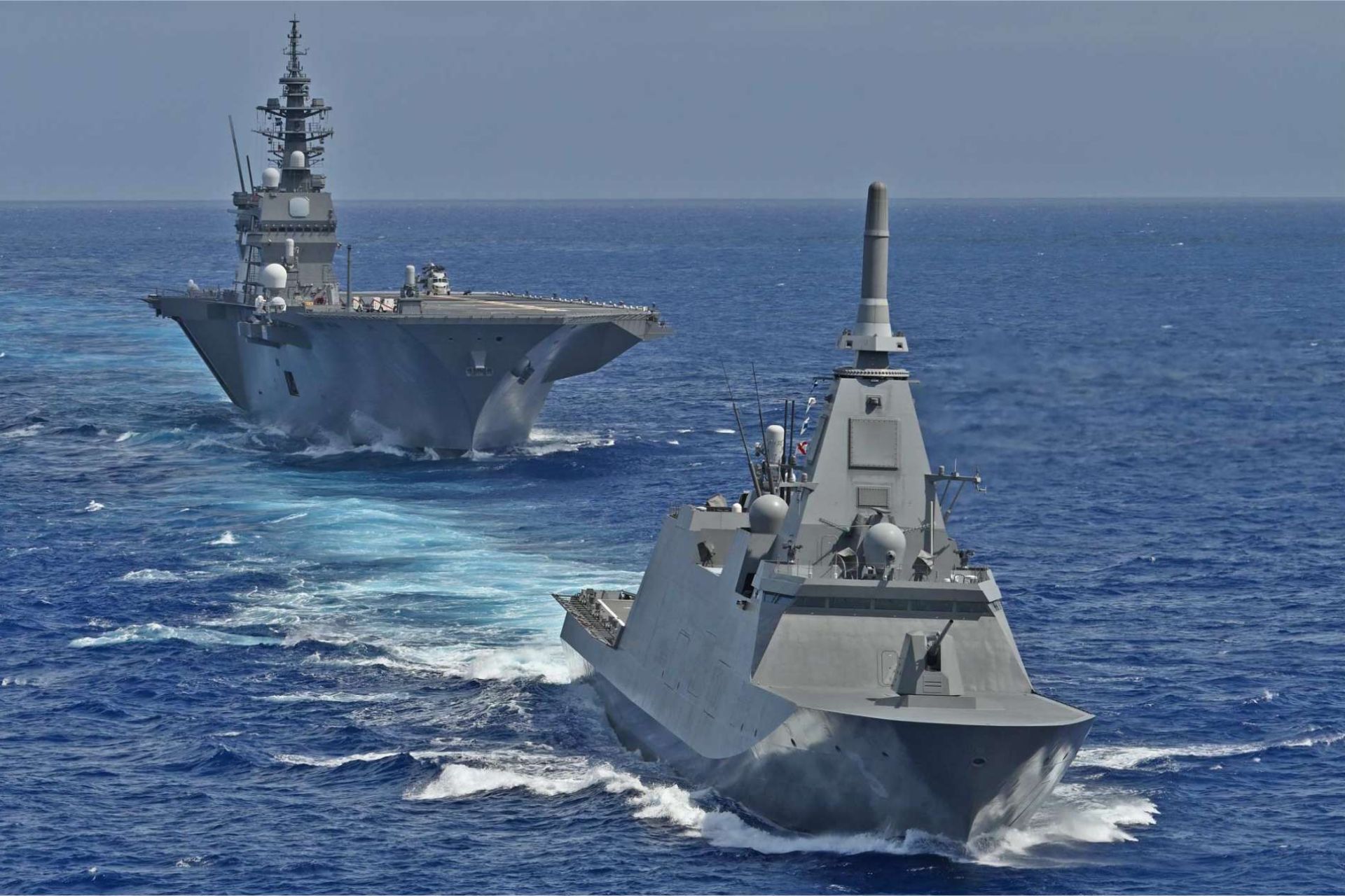 Japanese Navy's JS Izumo and Mogami-class frigate JS Noshiro. (Picture source: Japanese MoD)
