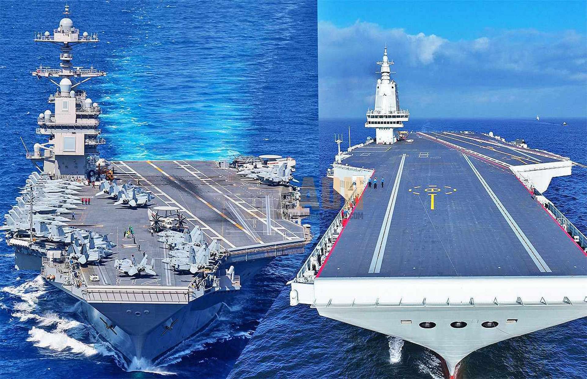 The USS Gerald R.Ford and the Fujian carriers side by side (Picture source: Air Data News - ADN).