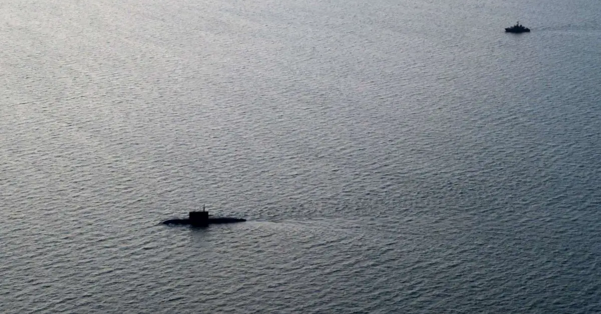 Swedish Navy corvettes and JAS 39 Gripen fighters shadow a surfaced Russian Project 636.3 Kilo-class submarine transiting the Baltic Sea, in a NATO-coordinated operation underscoring heightened vigilance over Russian naval movements (Picture source: Swedish Navy)