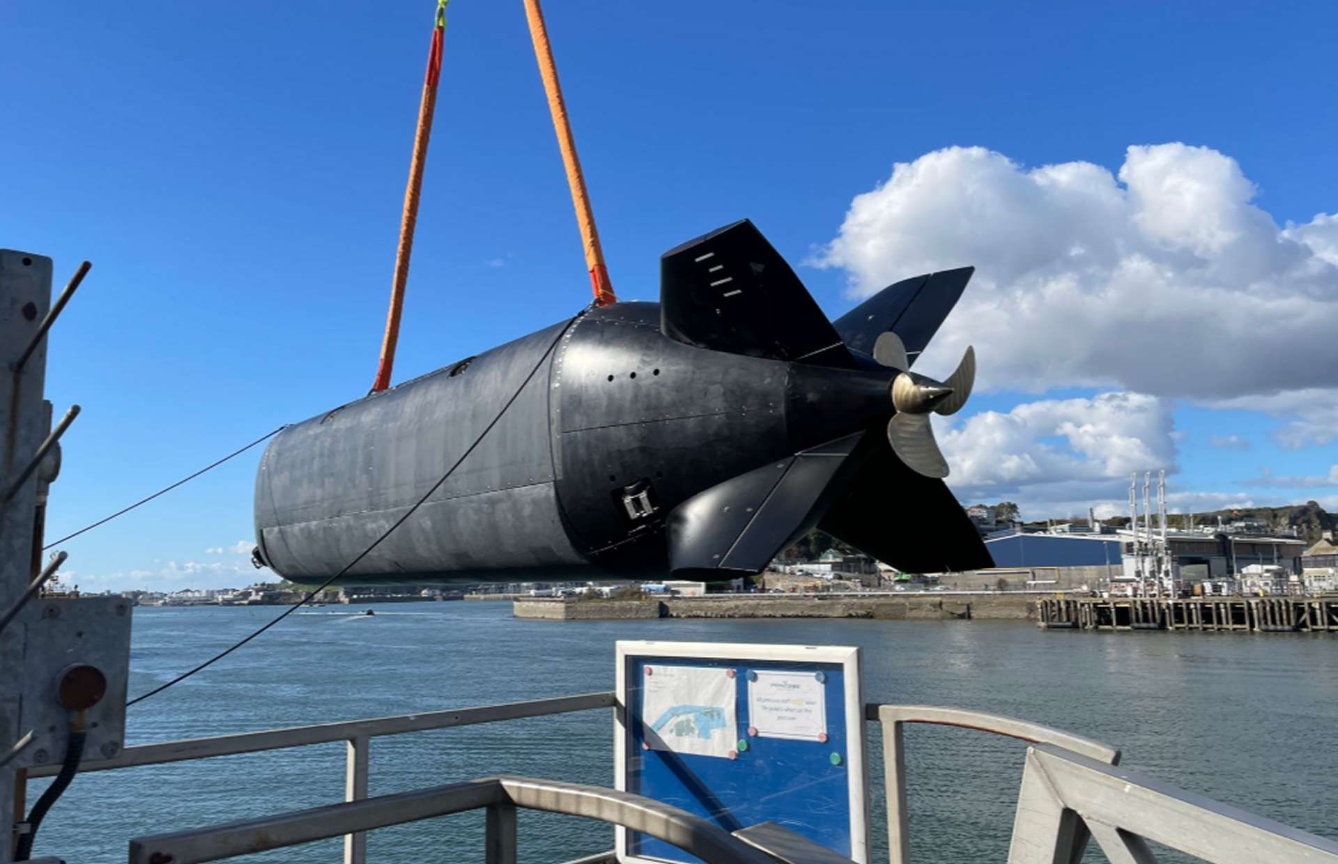 The Royal Navy’s Excalibur XLUUV is a 12-meter autonomous submarine drone with over 30 days of submerged endurance, capable of long-range reconnaissance, seabed warfare, and modular mission payloads, now integrated into AUKUS undersea operations (Picture source: Turnchapel Wharf).