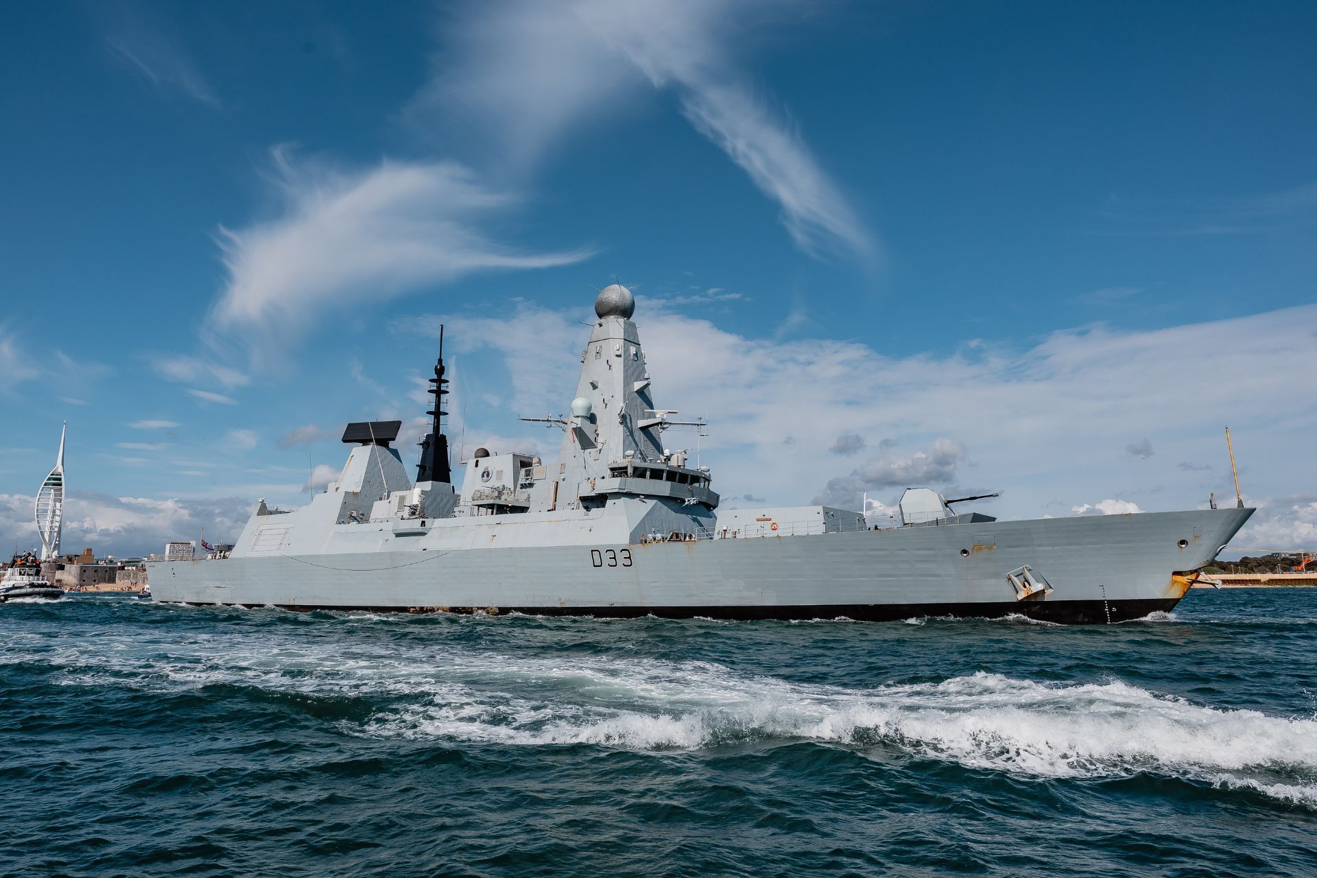 HMS Dauntless leaves HMNB Portsmouth to form part of the Carrier Strike Group as it deploys on an eight-month mission (Picture source: British MoD)
