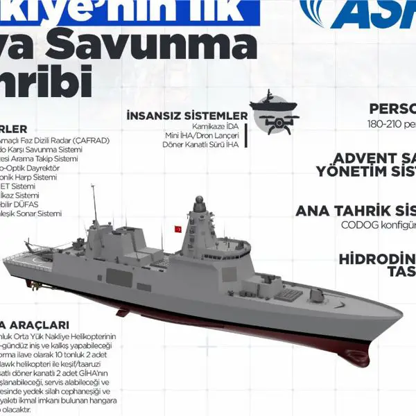 Turkish firm begins construction of its first indigenous Air Defense Destroyer TF-2000