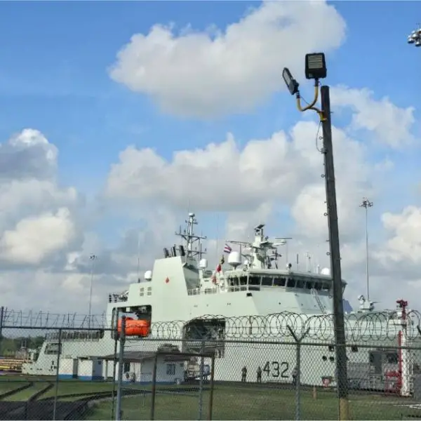 Canadian Navy OPV HMCS Max Bernays crosses Panama Strait
